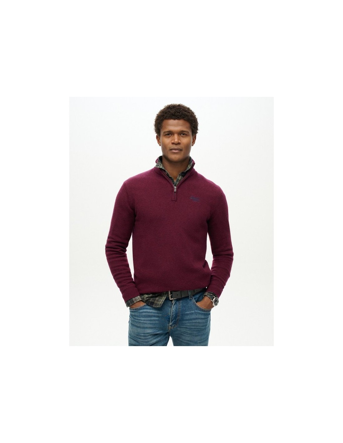 Jersey de punto con media cremallera y bordado