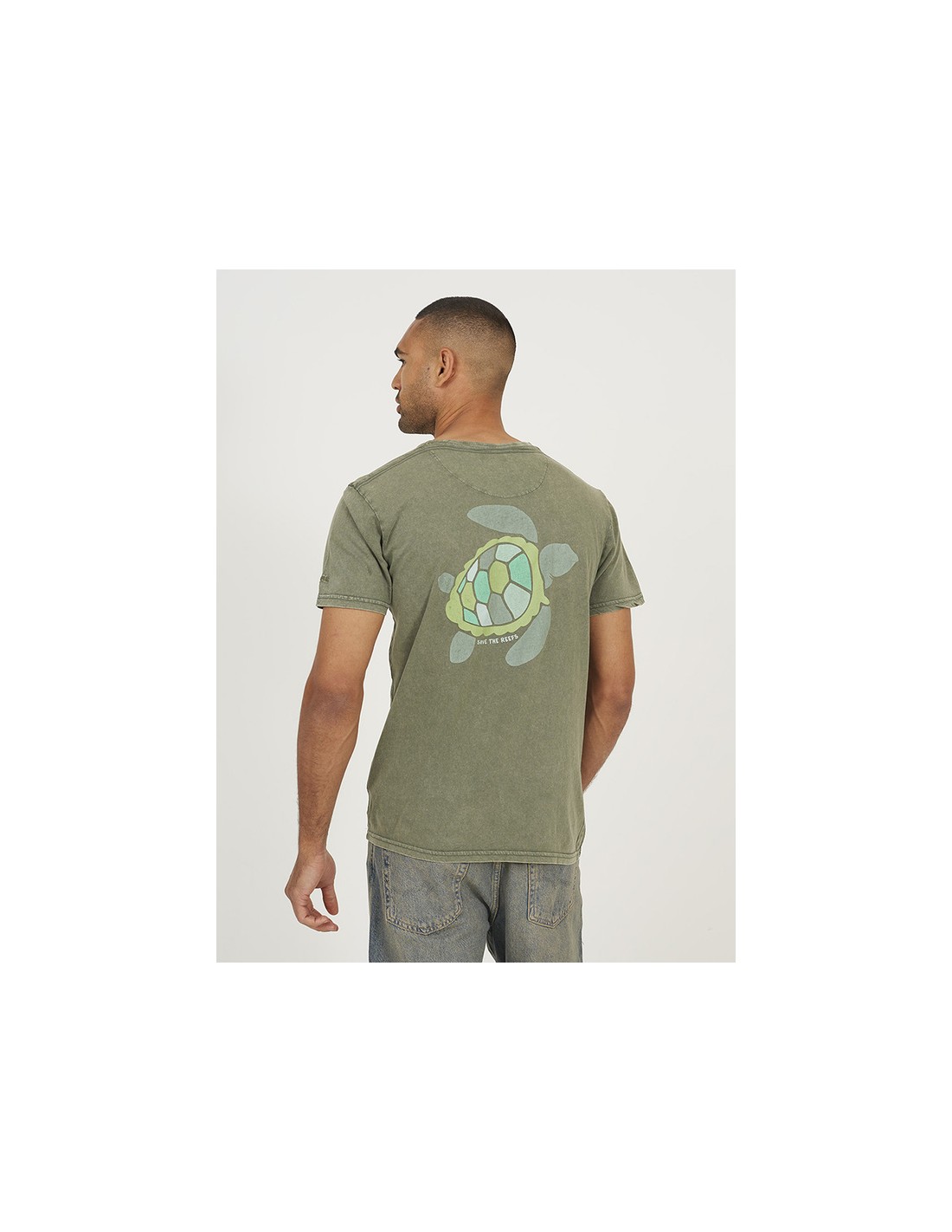 Estampado de tortuga en la espalda, y en el pecho