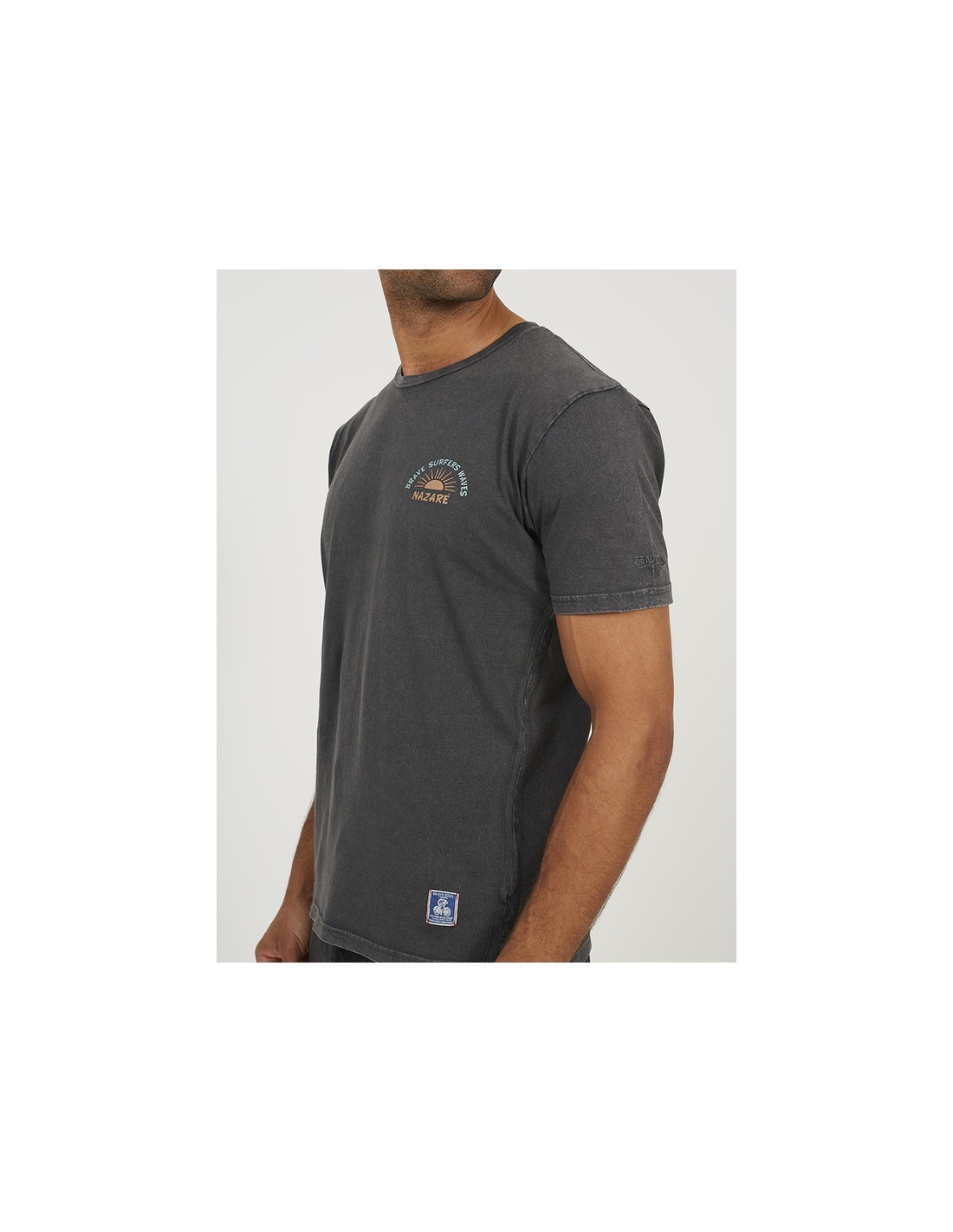 Camiseta de hombre manga corta cuello caja con estampado en la espalda y detalle de estampado pequeño en el pecho