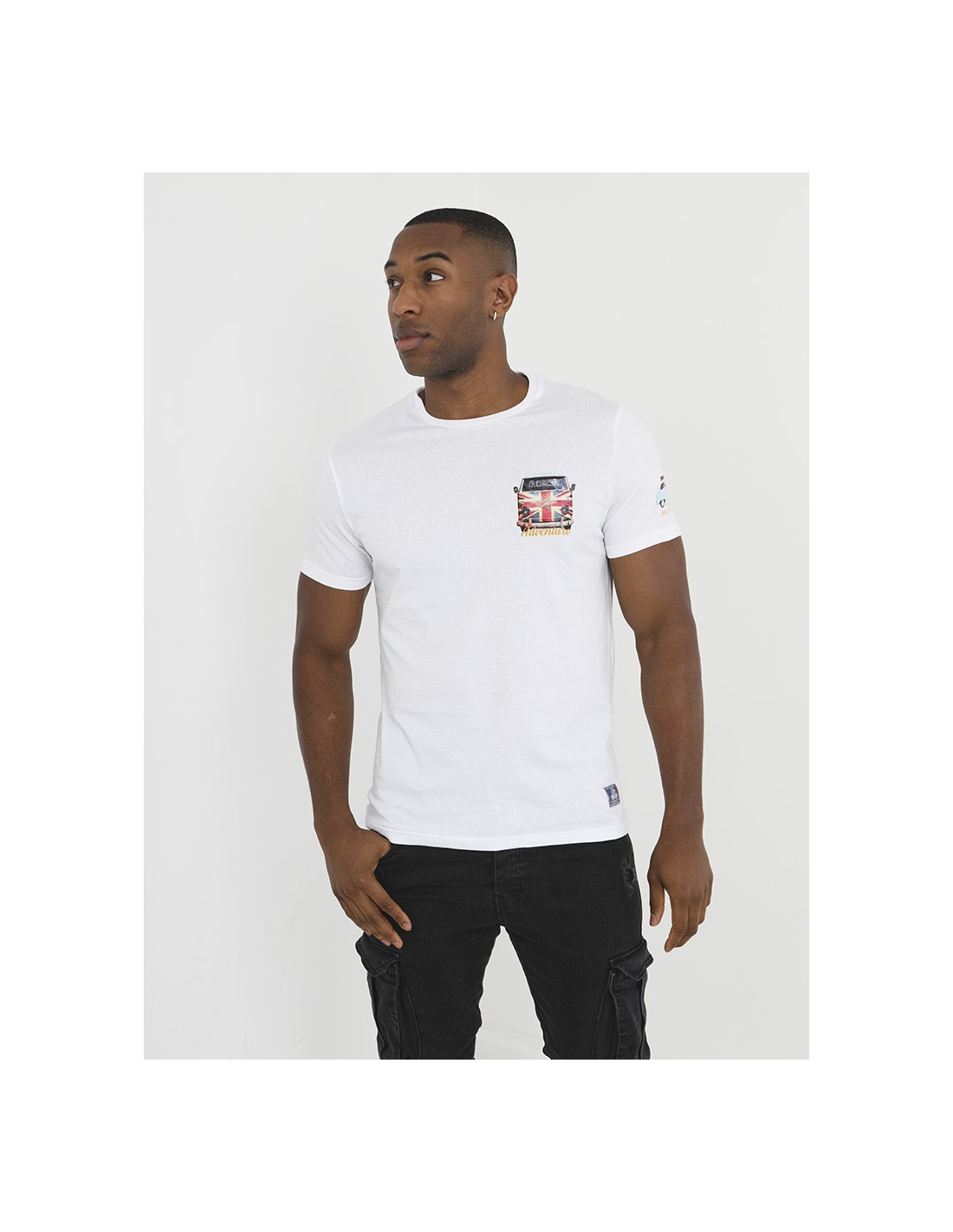 Camiseta cuello caja manga corta y print frontal y trasero