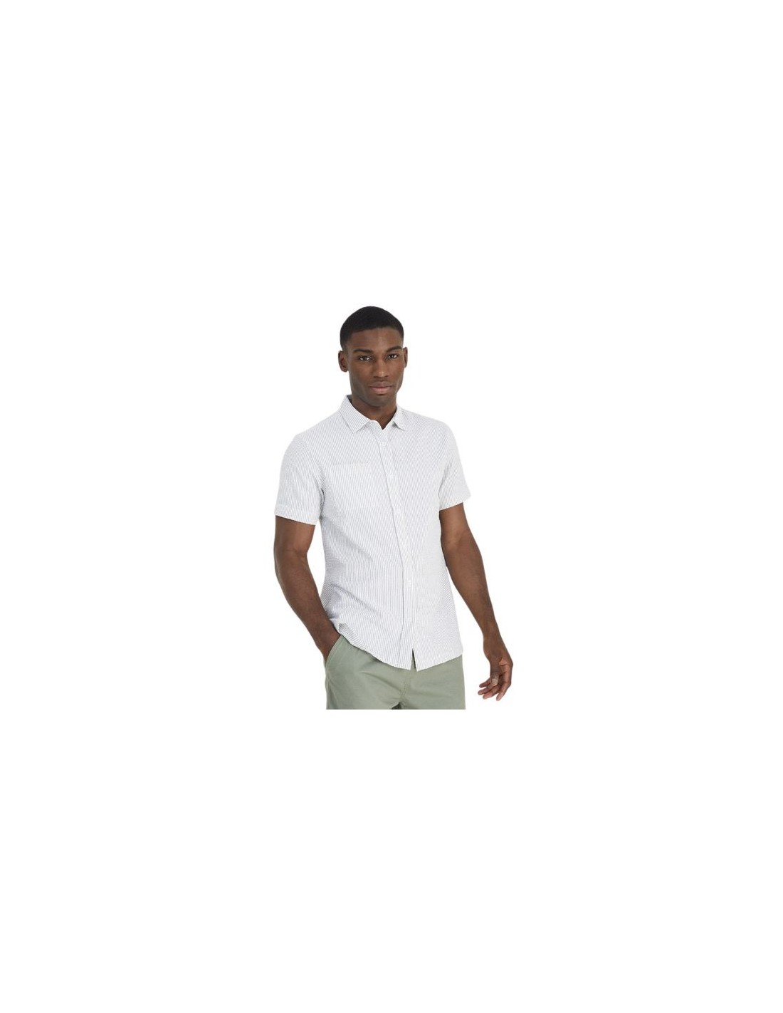 Camisa de hombre de rayas manga corta con bolsillo en el pecho, cierre de botones