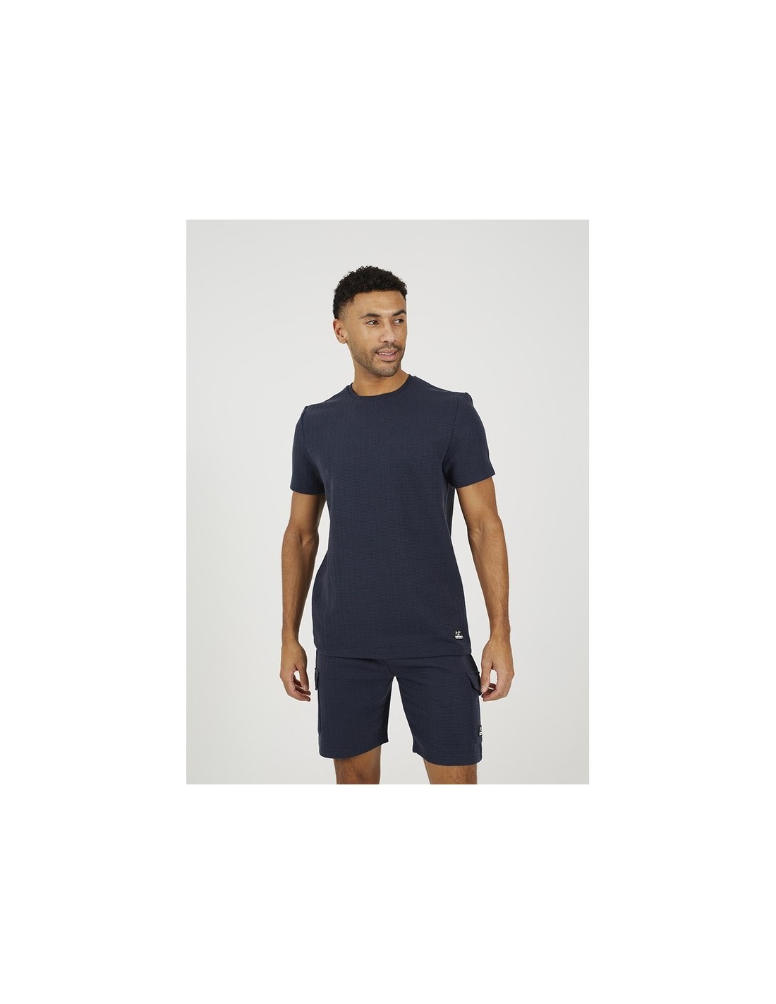 Camiseta de hombre manga corta, cuello caja y con detalle de jacquard