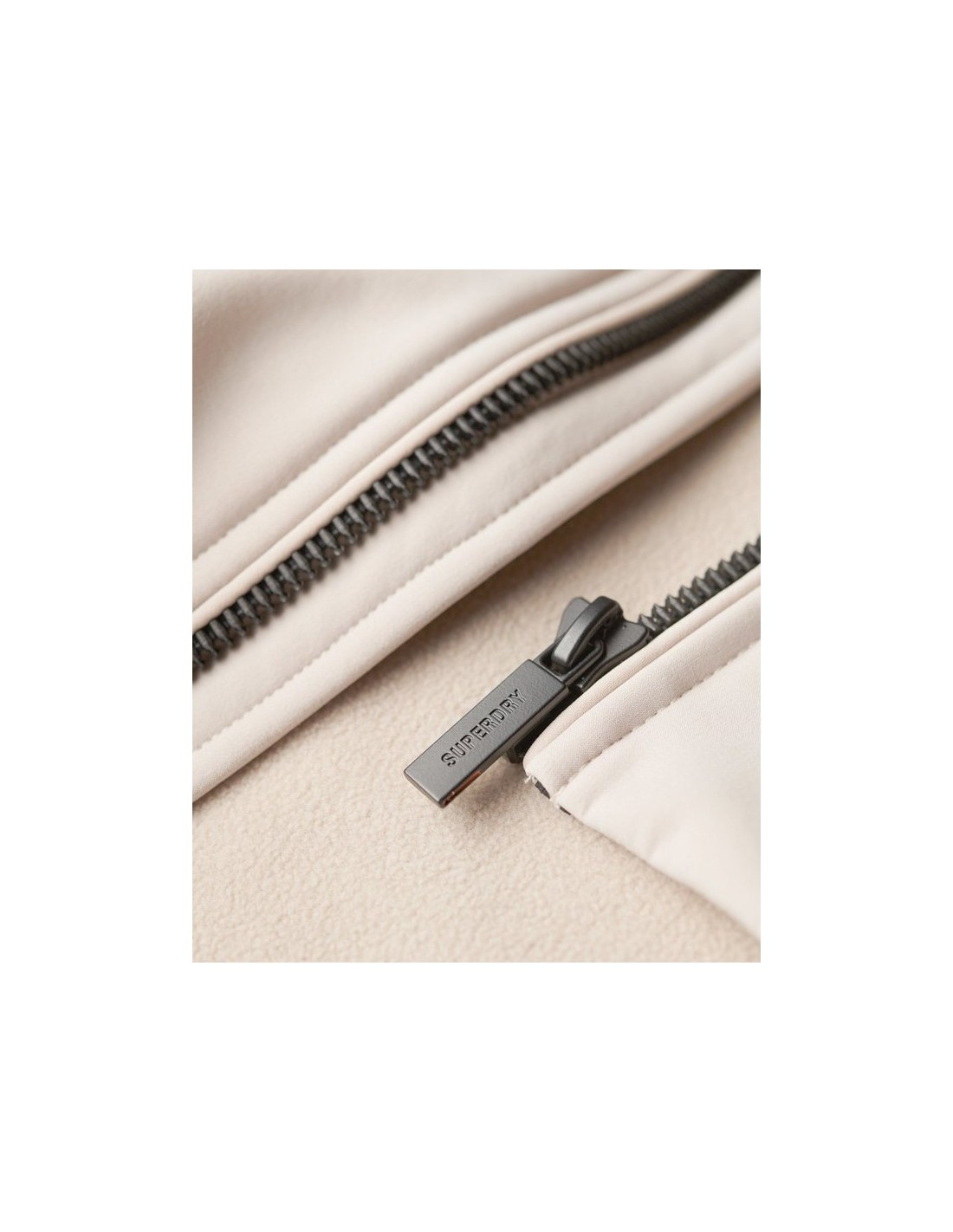 Cierre con cremallera. Dos bolsillos delanteros con cremallera. Puños ajustables con velcro, bajo con cordón de ajuste elástico y cuello interno de canalé. Con costuras internas selladas.