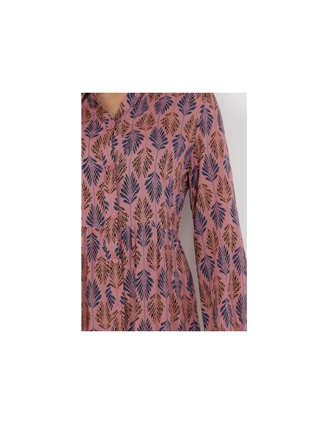 Vestido largo , de manga larga, estilo camisero, con abotonadura en la parte delantera