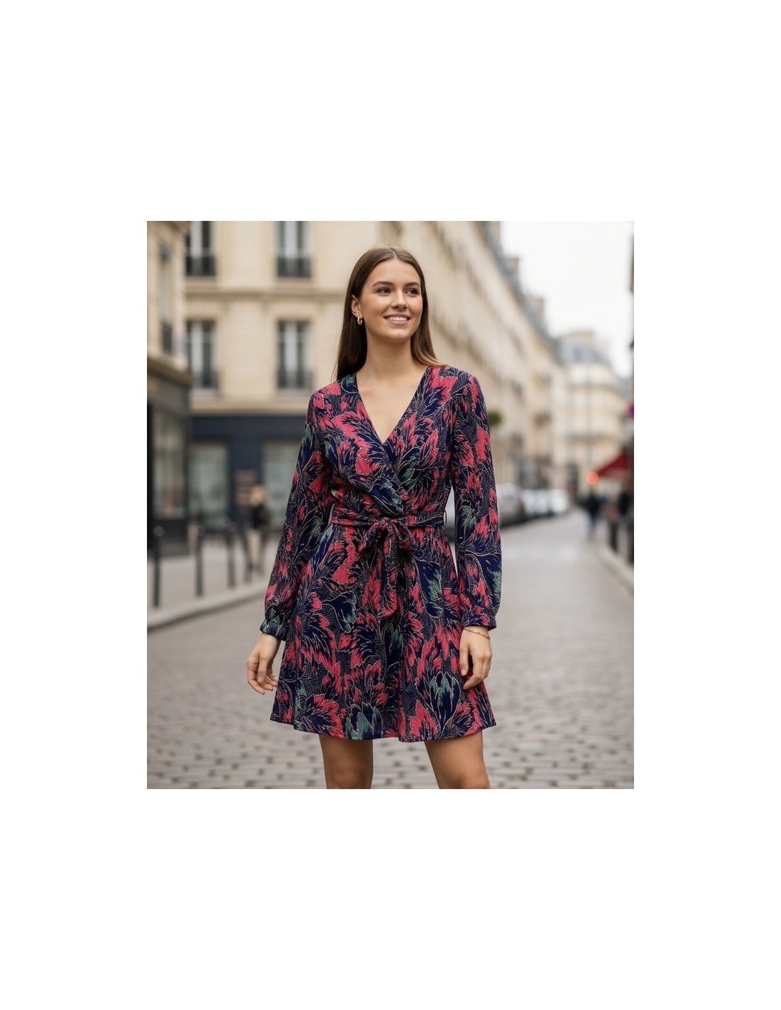 Vestido de manga larga con escote en pico