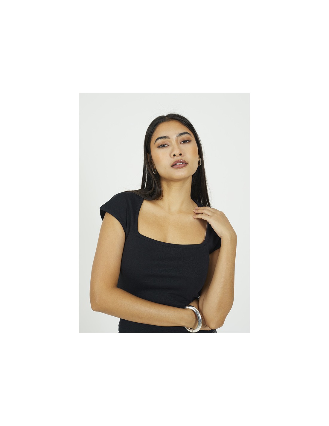 Camiseta para mujer de manga corta y cuello cuadrado
