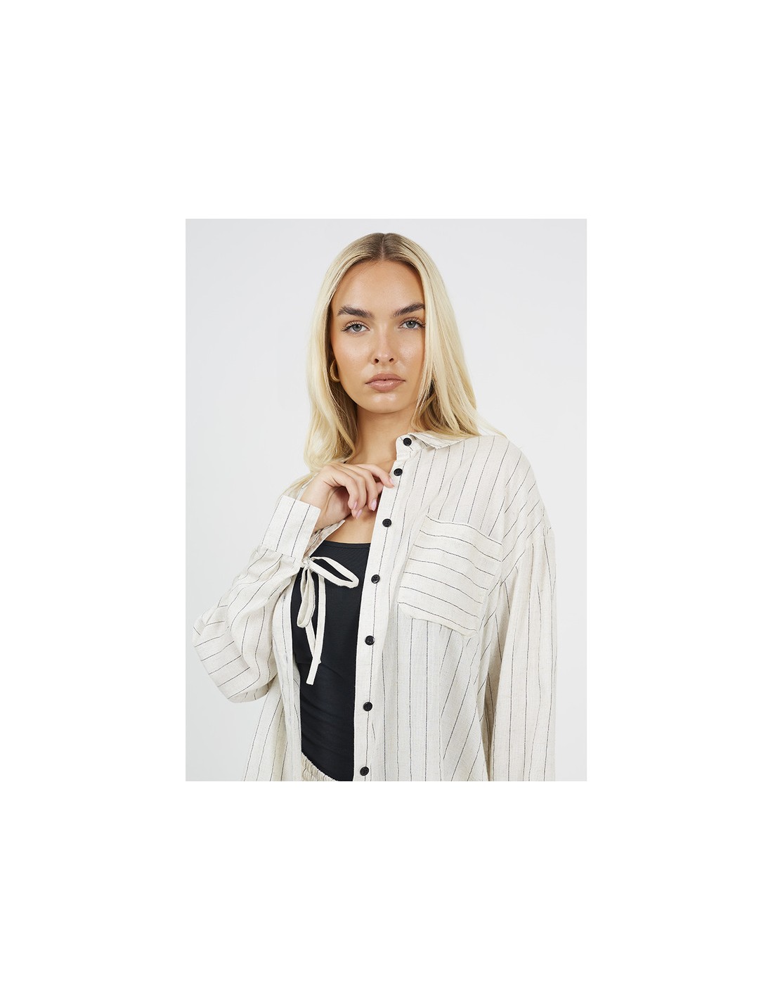 Camisa de rayas de mujer manga larga, detalle de abertura en la espalda
