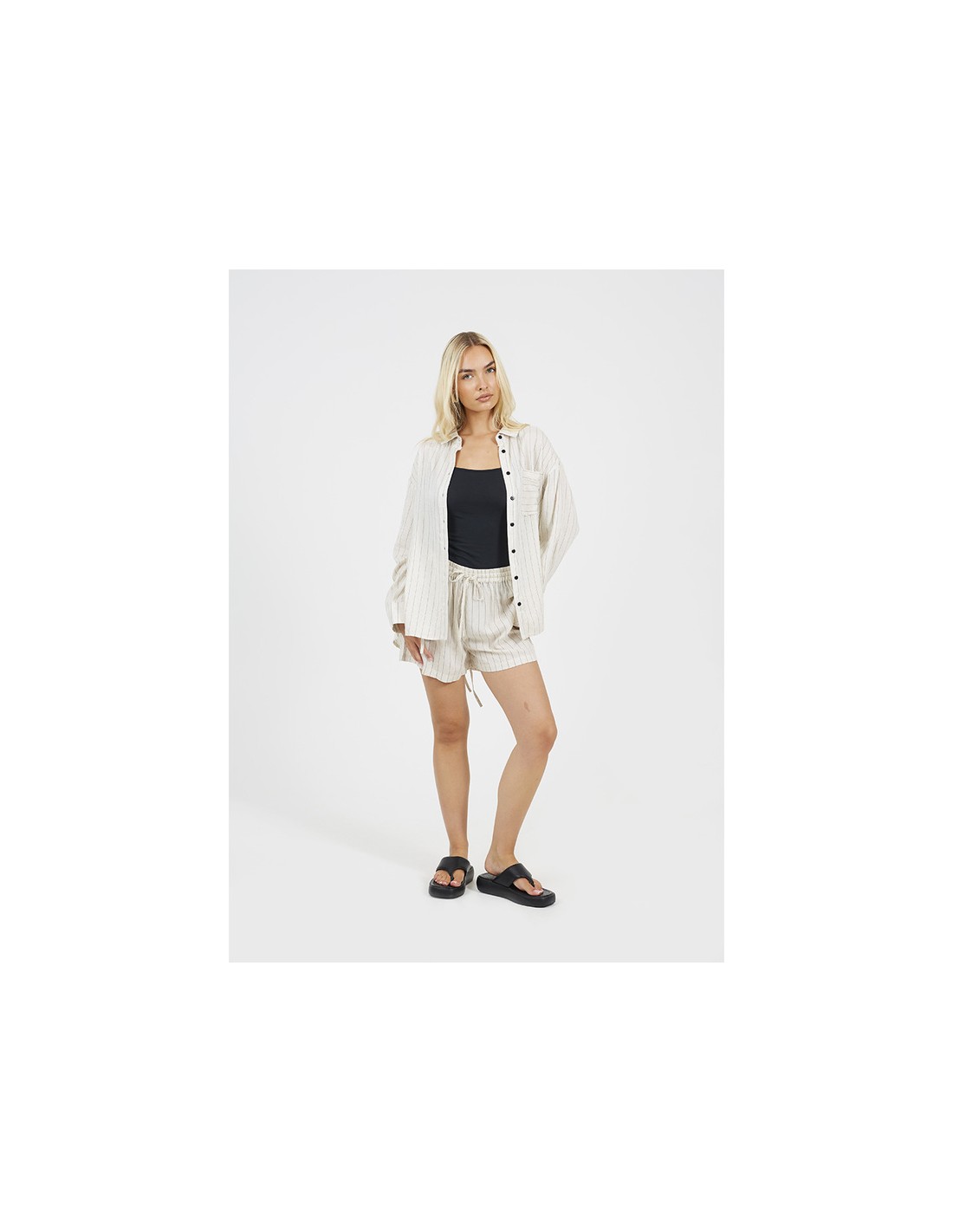 Camisa de rayas de mujer manga larga, detalle de abertura en la espalda