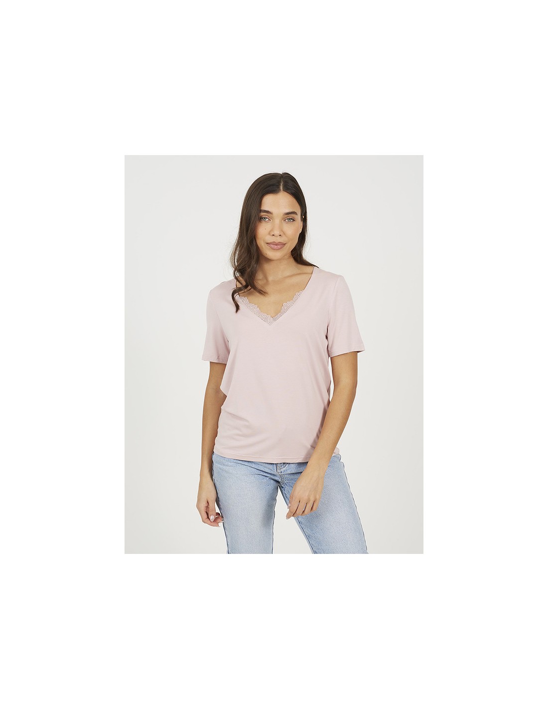 Camiseta de mujer de manga corta con cuello pico