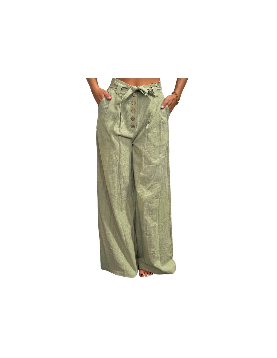 Pantalón largo de mujer con cinturón del mismo tejido