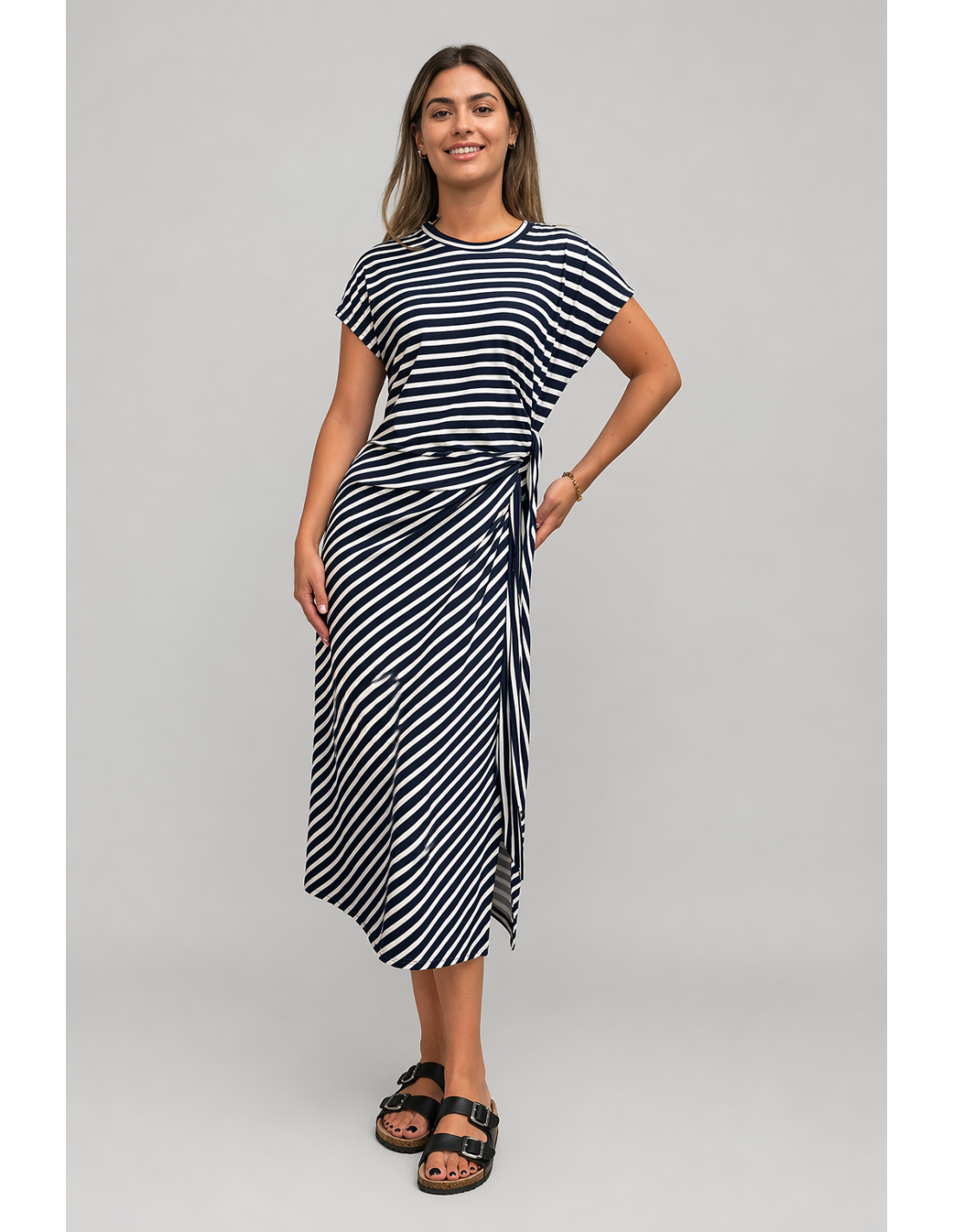 Estampado de rayas. tejido fluido y fresco.
